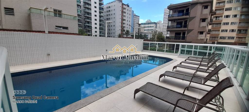 Apartamento dois dormitórios, sala, cozinha, banheiro e lavanderia, sacada ampla com vista mar, 1 vaga de garagem, área de lazer na cobertura com salão de festas, piscina e quadra.