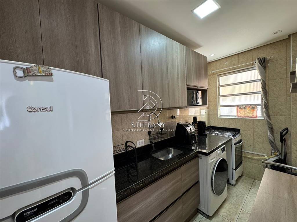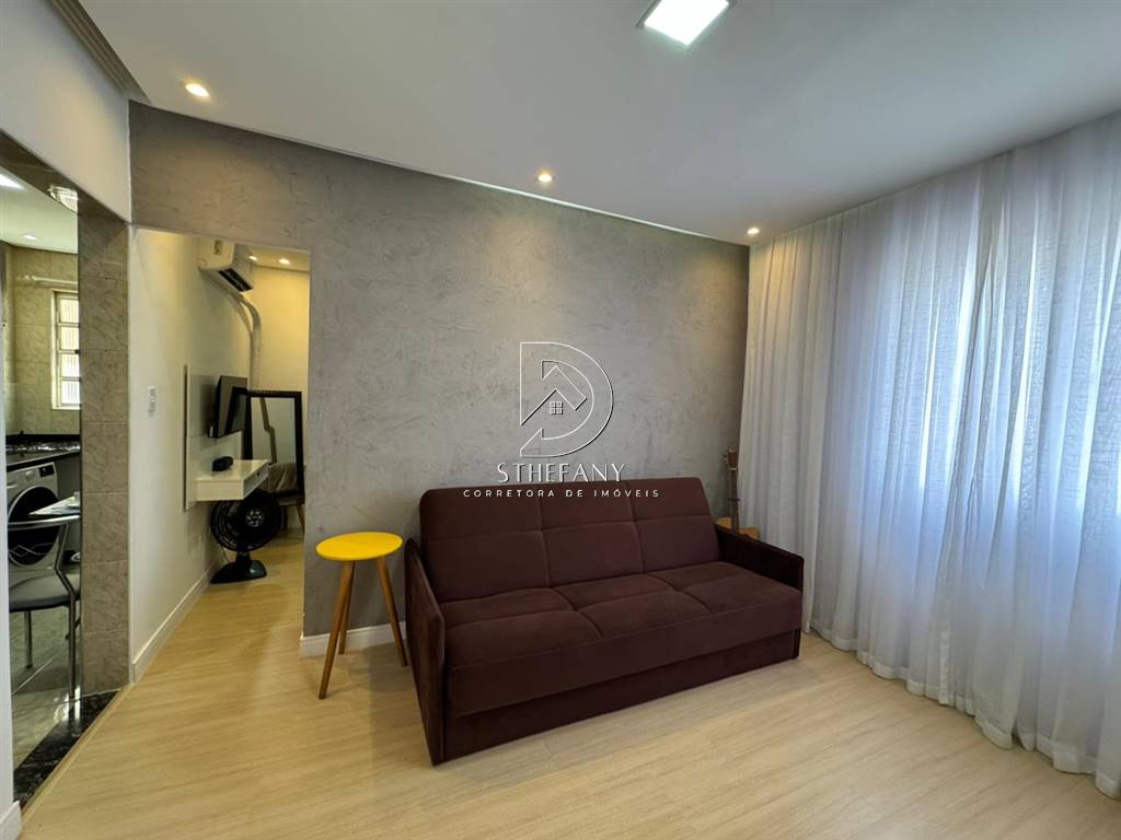 Apartamento estilo kitão, 1 dormitório, sala, cozinha, banheiro. Uma vaga de garagem.